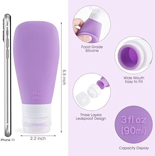 Leakage Proof Travel Bottles: with three layers leak proof design it prevents liquid leakage or spillage, offers protection to your luggage and cloths without making a mess. Soft silicone tubes are easy to squeeze to get down to the very last drop out.