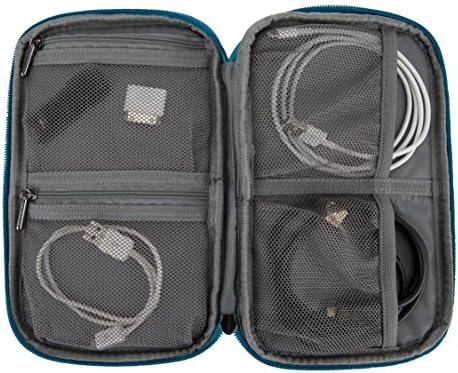 Keep your tech organized. Smart and secure this organizer comes with 4 zippered and open mesh pockets for cords and devices. Front pleated zip pocked holds a power pack or two.